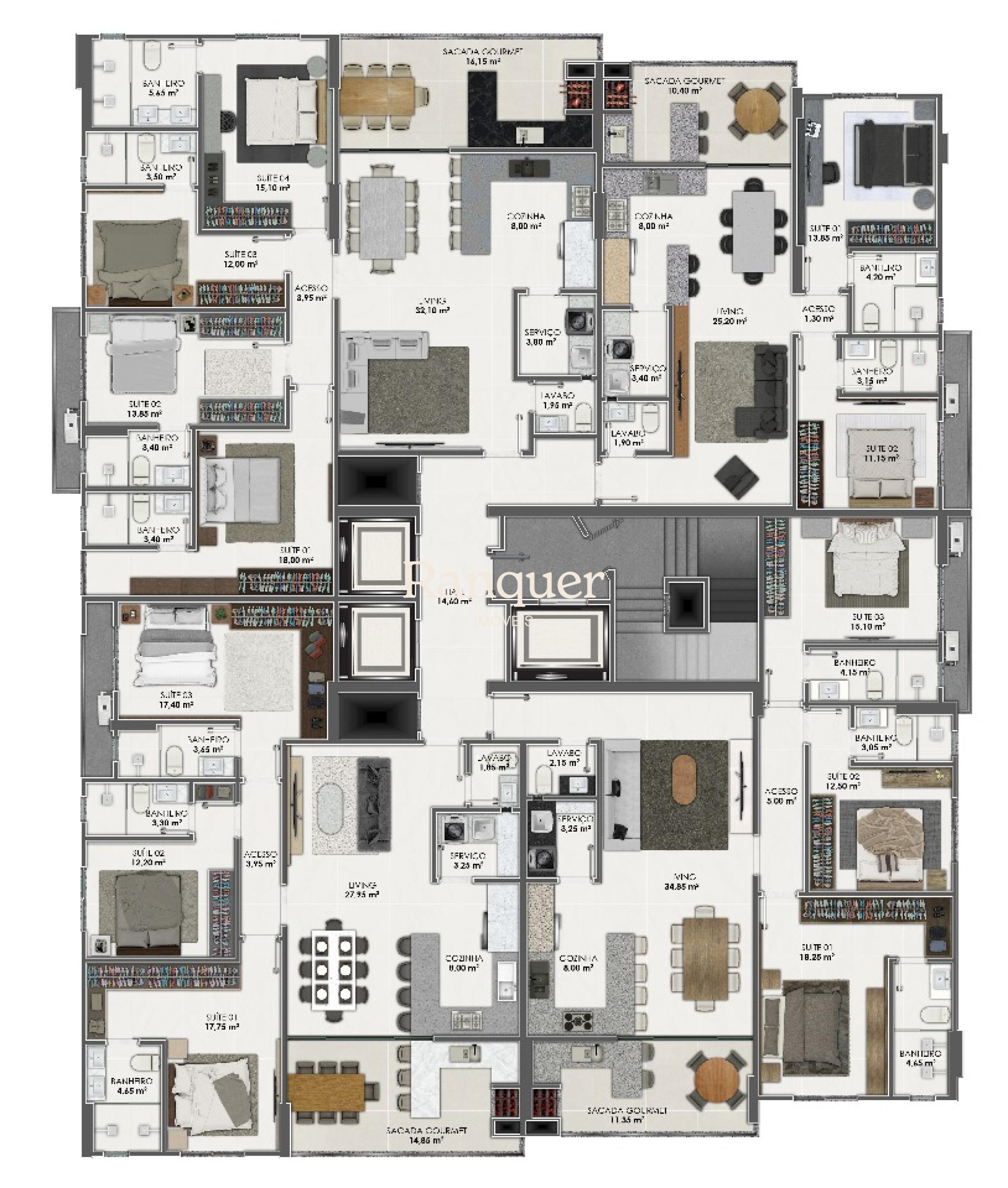 2 quartos (sendo 2 suítes)