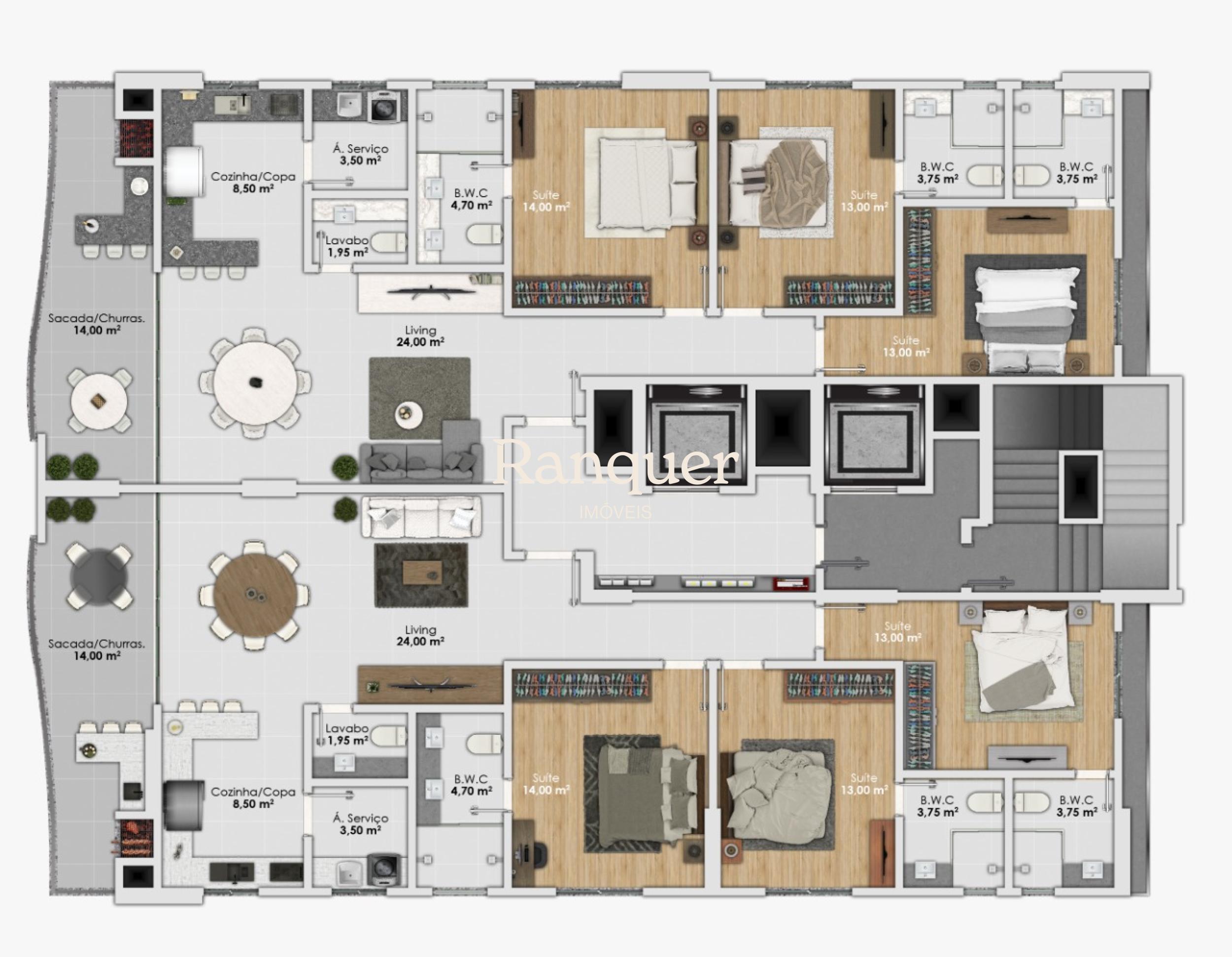 3 quartos (sendo 3 suítes)