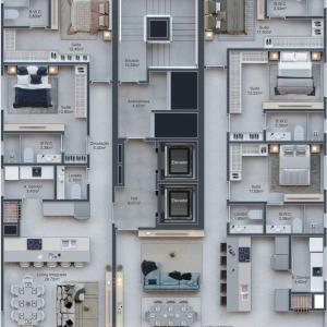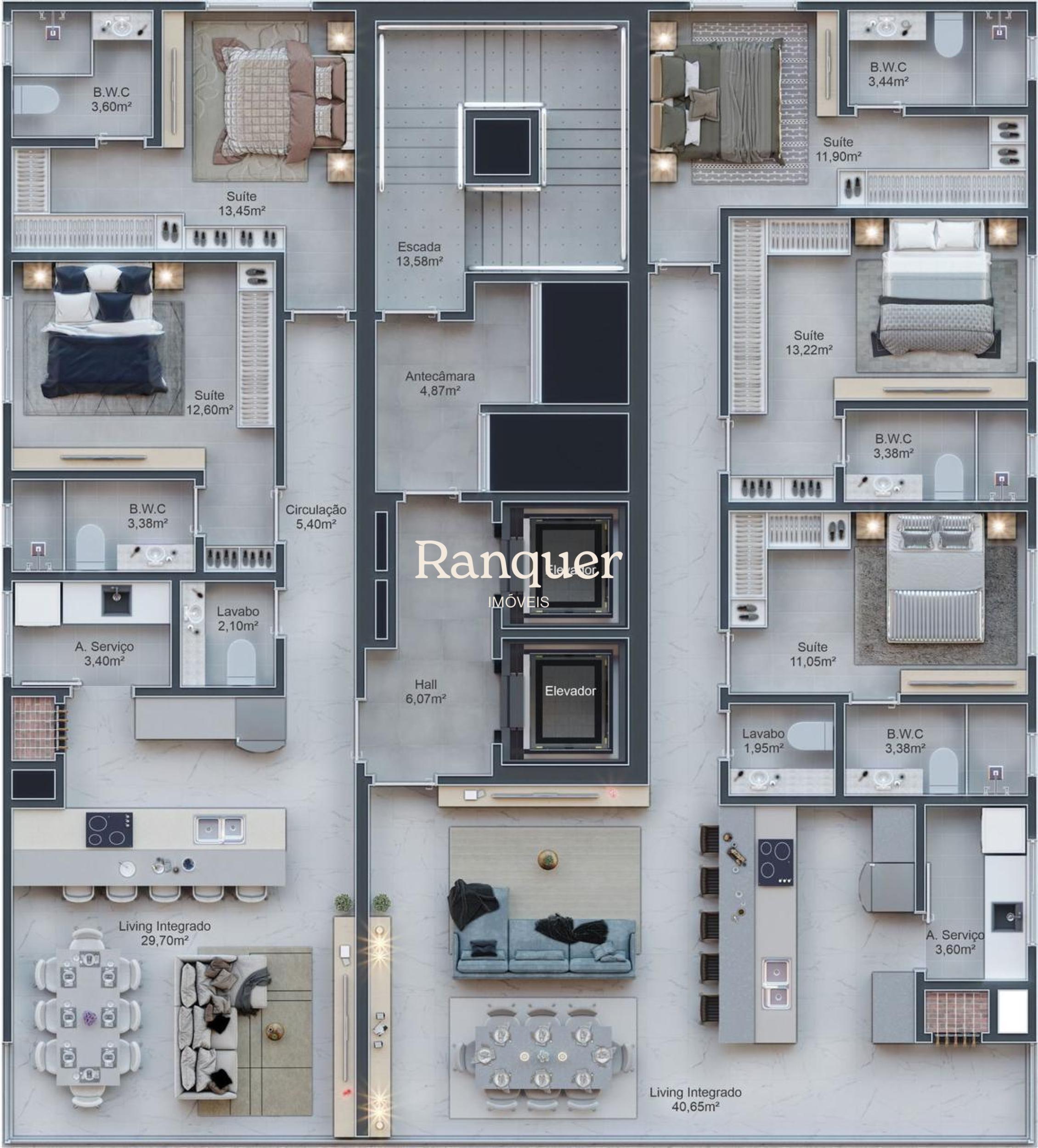 3 quartos (sendo 3 suítes)