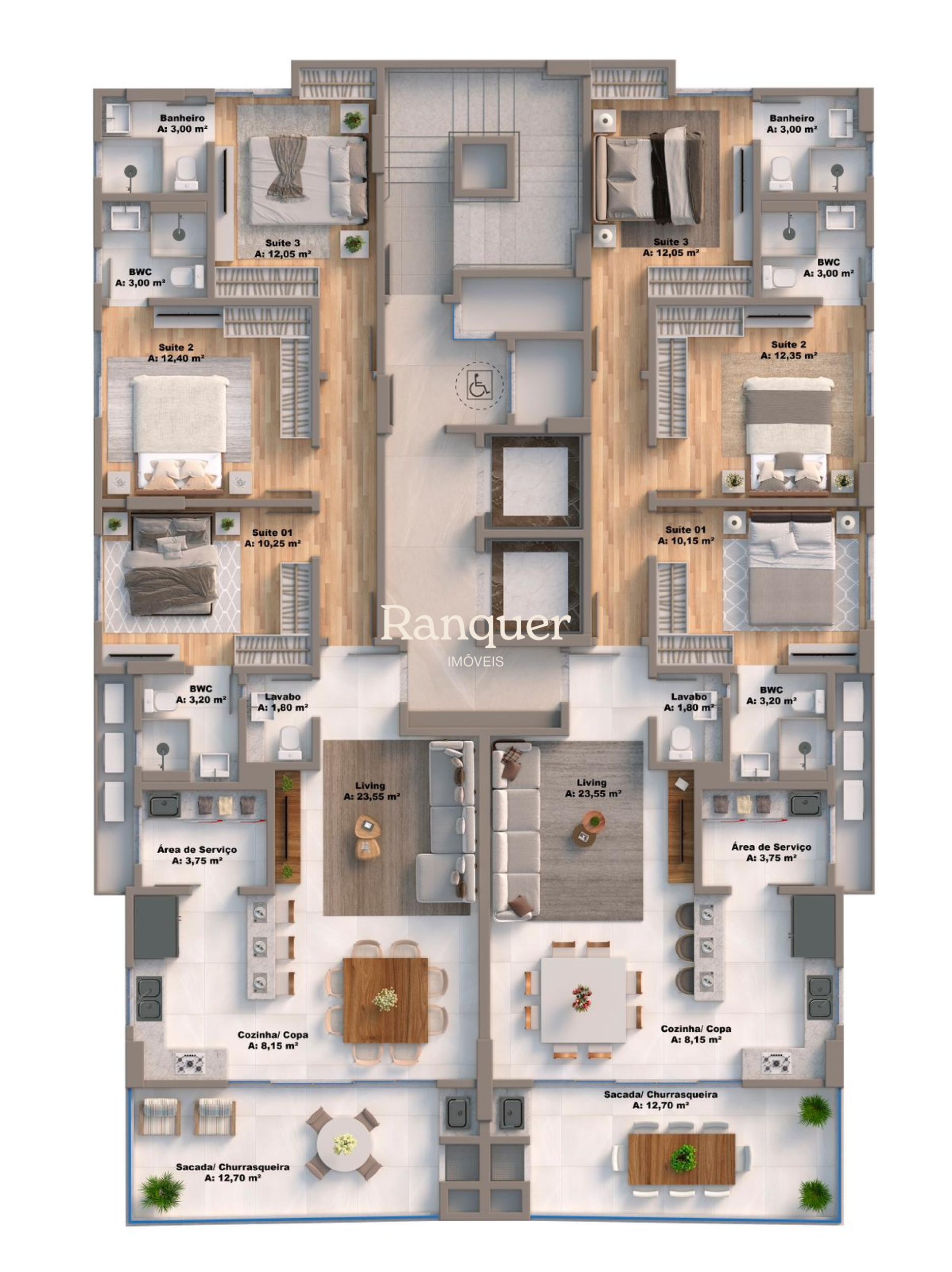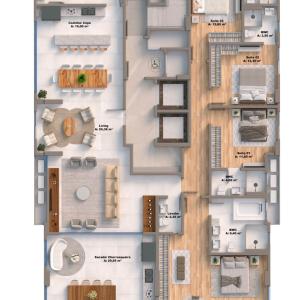 3 quartos (sendo 3 suítes)