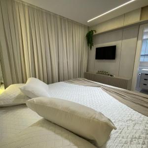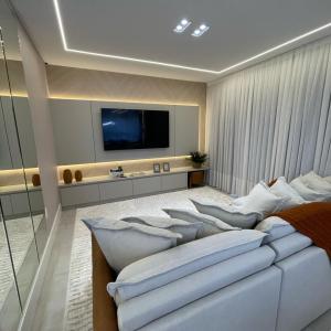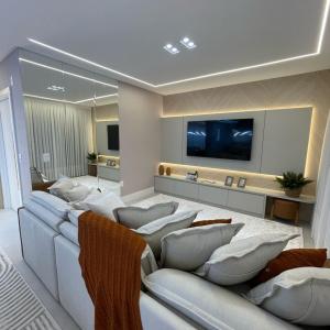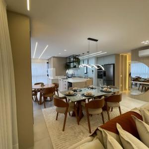 Apartamento finamente mobiliado à venda no Edifício Fiori del Mare em Itapema com aproximadamente 133m² privativos, 03 suítes, lavabo, living integrado com sala de estar e sala de jantar, cozinha, sacada com churrasqueira, área de serviço e 02 vagas de garagem.
