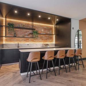 O empreendimento possui duas torres e um lazer completo com 1.400m² que contemplam 02 salões de festas, sala de jogos, espaço gourmet, sauna com duchas, espaço ofurô, pub, piscina com raia semiolímpica, piscina infantil e prainha, brinquedoteca, playground, academia, quadra poliesportiva e amplo terraço ao ar livre.