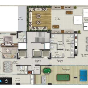 3 quartos (sendo 3 suítes)